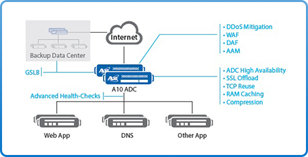 The A10 Thunder and AX Series ADCs include a full featured, ICSA Labs-certified Web Application Firewall that blocks web attacks before they can reach vulnerable applications. Deployed as a proxy in front of web servers, Thunder ADC inspects web requests and responses and can block, sanitize, or log malicious activity.